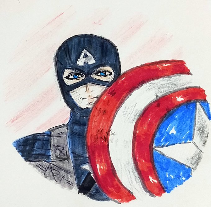 #フォロワーさんの推しが描きたい @WataruCaptain さん ありがとうございました☺️ キャプテン・アメリカです🇺🇸 少し可愛くなってしまったでしょうか🤔 けれど、盾は…なかなか上手く描けたと思っています😁✨ #絵描きさんとつながりたい #Marvel #CaptainAmerica #キャプテンアメリカ