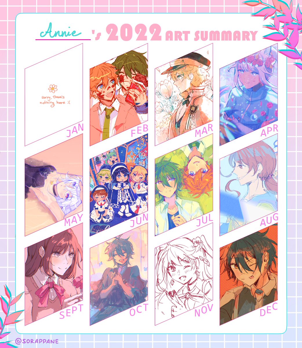 my #artsummary for 2022 or, alternatively: "can you tell when my university courses started?" (thank u sora for the template much appreciated)