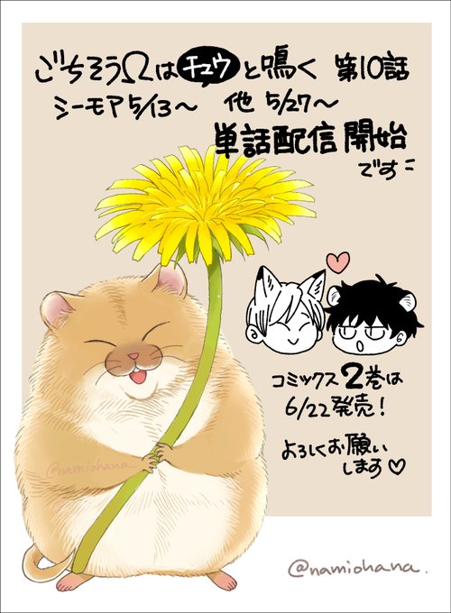 🌷ごちそうΩはチュウと鳴く2 発売中です 🌷7/5まで1巻電子セール中🦊🐹✨ 🌷よろしくお願いいたします 🌷コミックシーモア cmoa.jp/title/230799/ 🌷Renta! renta.papy.co.jp/renta/sc/frm/i… 🌷Amazon amazon.co.jp/gp/product/486…