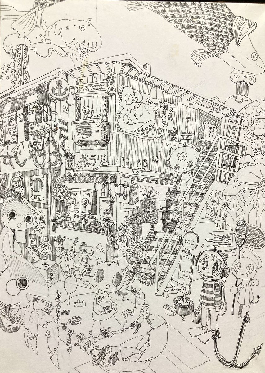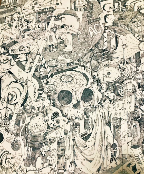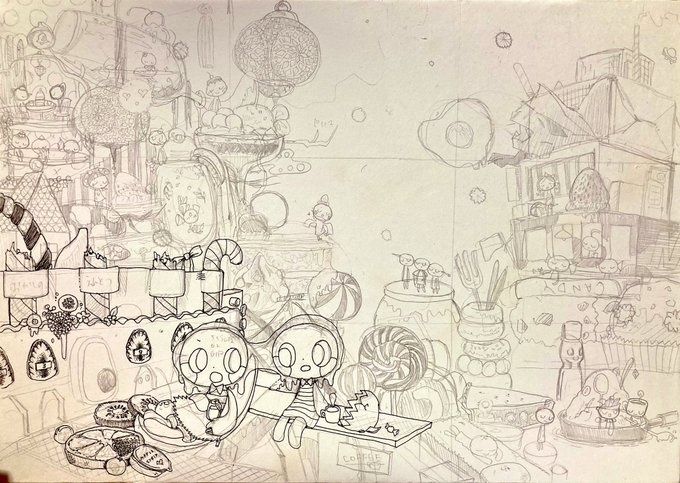 途中経過。甘いものをつまみながら描いてます。🍫☕️ 糖分が無いと、絵が描けない。 #ペン画 #イラスト #イラストレーション #illustrationart #illustration #絵描きさんと繋がりたい