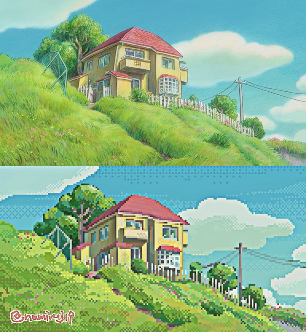 はじめての #ドット絵 #ピクセルアート [参考] 崖の上のポニョ
