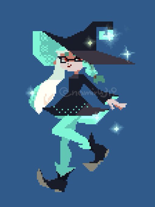 10 18 #pixelart #ドット絵 #Splatoon3 魔女イカちゃん インク色レギンスありがとうの絵 22/09/16 07:06
