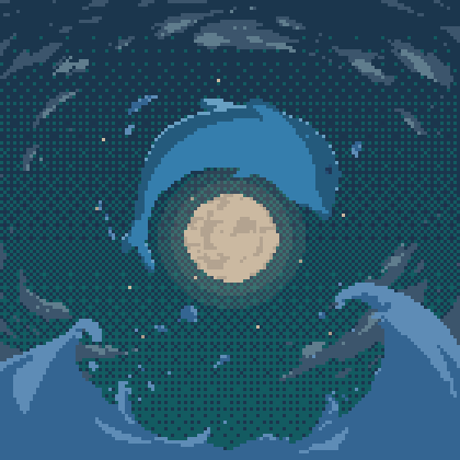 月とイルカ #pixelart #ドット絵