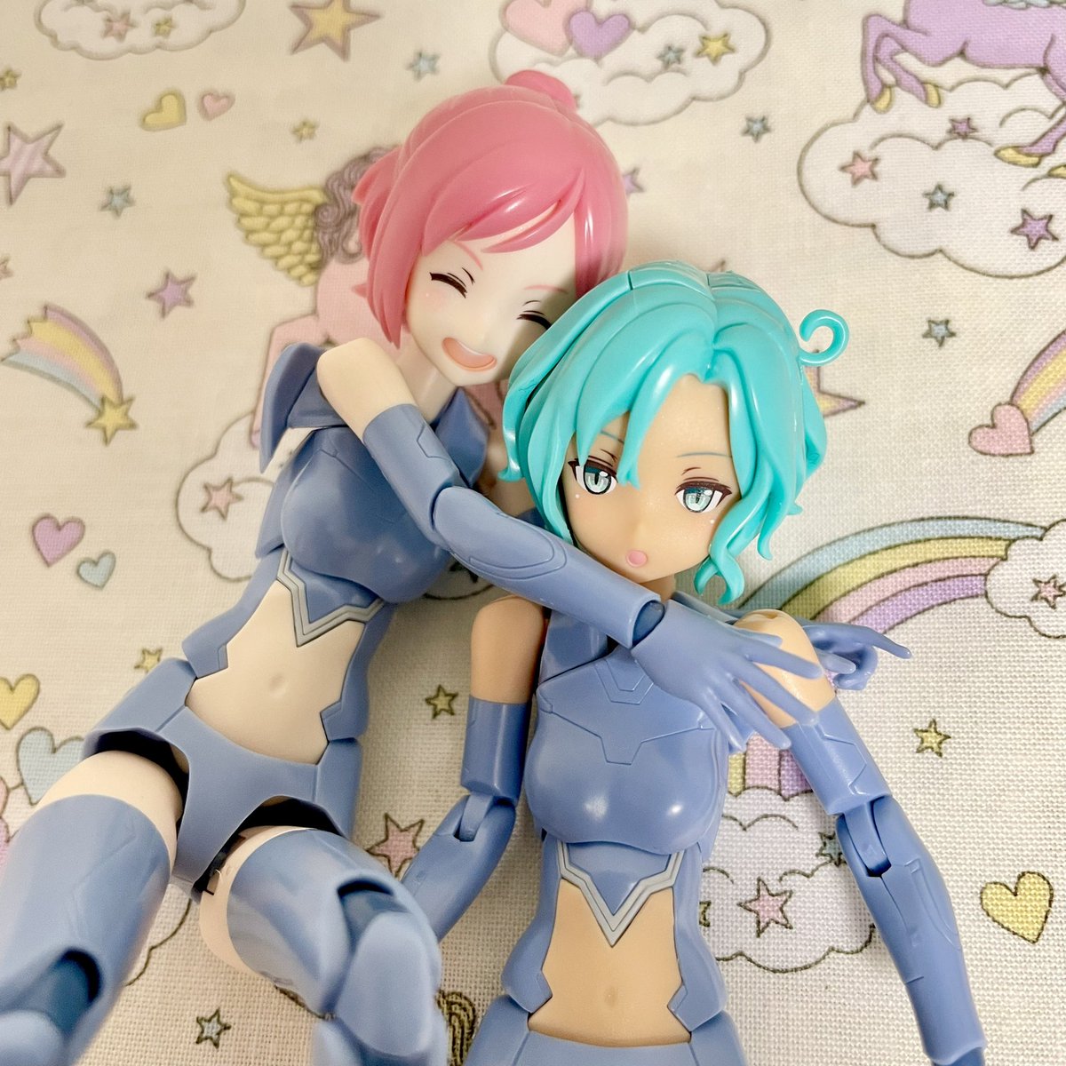 昨日(8/9)、ハグの日だったらしいので。。 今さらですが仲良しSOL姉妹を投げます(*´꒳`*) #ハグの日 #メガミデバイス