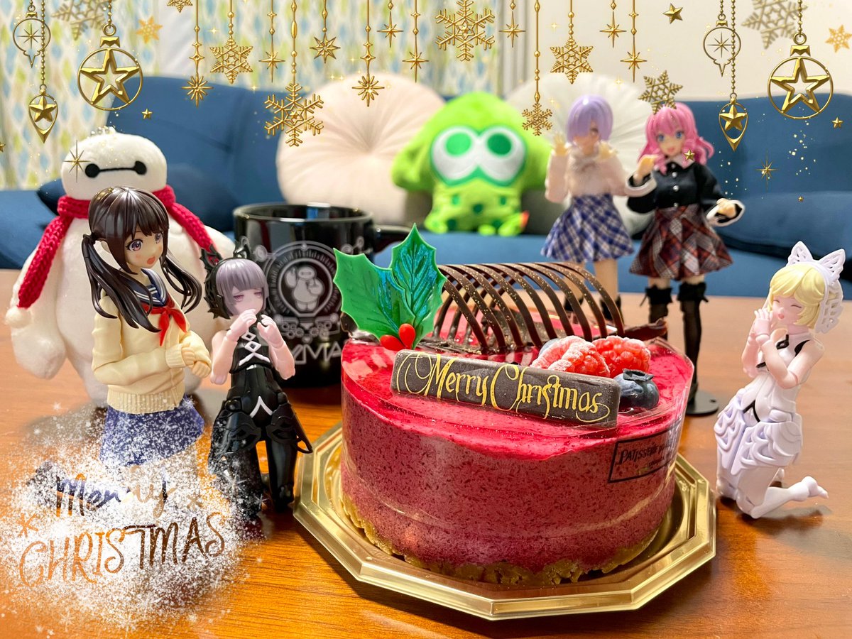 一昨日の話ですが、いちごのケーキで雛祭りしました🌸╰(*´︶`*)╯✨ キューショナーズも喜んでますね🍓 #メガミデバイス