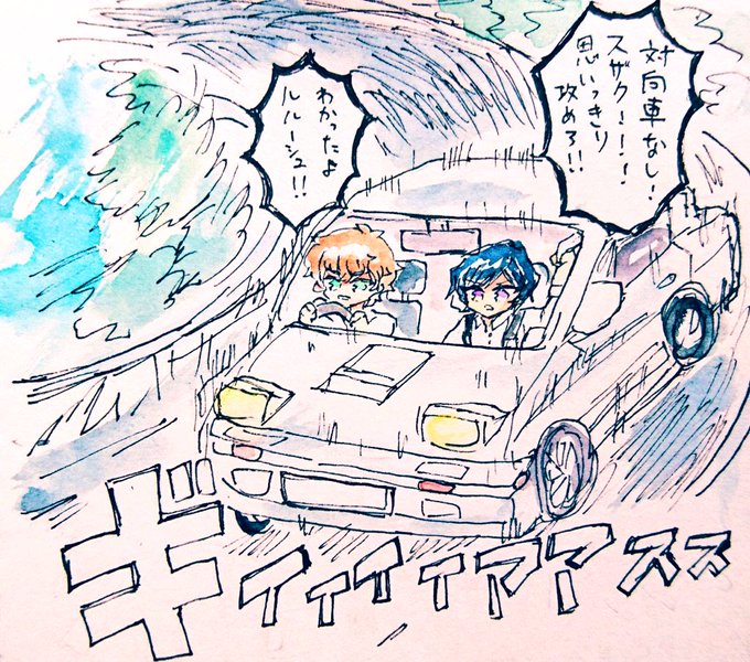 #スザルル版深夜の絵描き文字書き60分一本勝負 お題『ドライブ』 遅刻参加+25分(車には脳内で補正お願いします😭🙏) 深夜にスサ"クくんが激しく攻めまくる…(峠を) ネタの提供はロメさん🚗