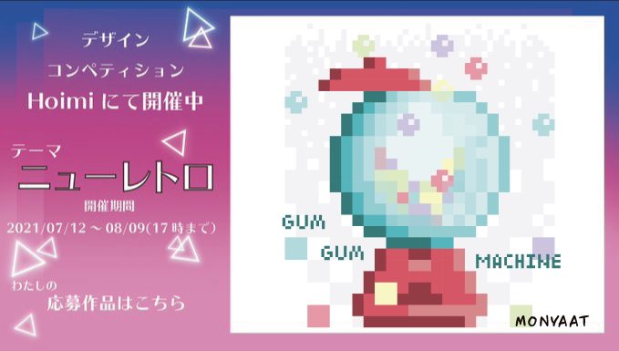 \ニューレトロ/#Hoimi Tシャツコンペに応募しました サブテーマは画像解像度です、なので乱暴な大きさのガムボールが手前にあります、手抜きじゃありませんよ~ #Hoimiデザインコンペティション #テーマニューレトロ #ガム #ドット絵 #ドットイラスト