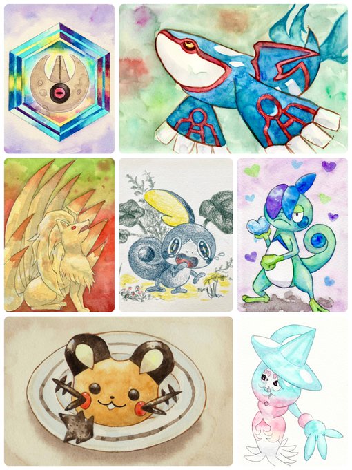 9 26 #水彩ポケで12色相環 はじめて企画イラスト参加してみました〜 とっても素敵にまとめていただいて感動✨ 6番、翡翠色のドラパルトを担当させていただきました。 22/11/03 00:07