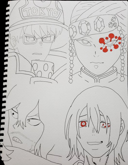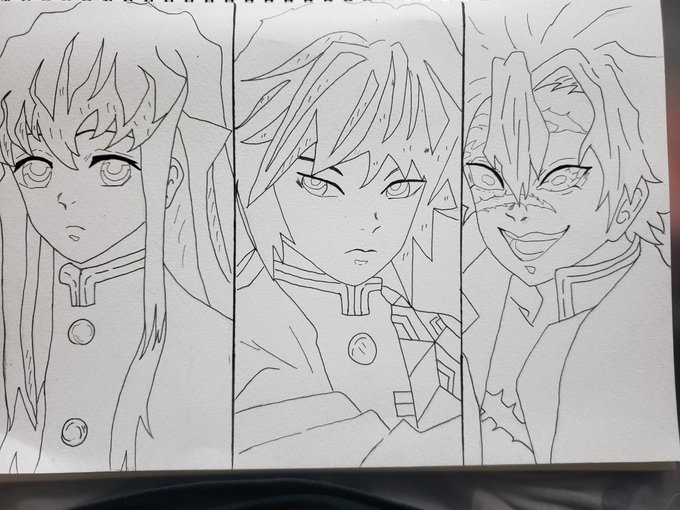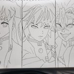 ( ´ー`)フゥー... 線画9割型終了。。。 〜天元様意外の推し3人衆〜 めっちゃ誤字ってたので上げ直しました(;^ω^)すみません💦 #模写 #鬼滅の刃イラスト