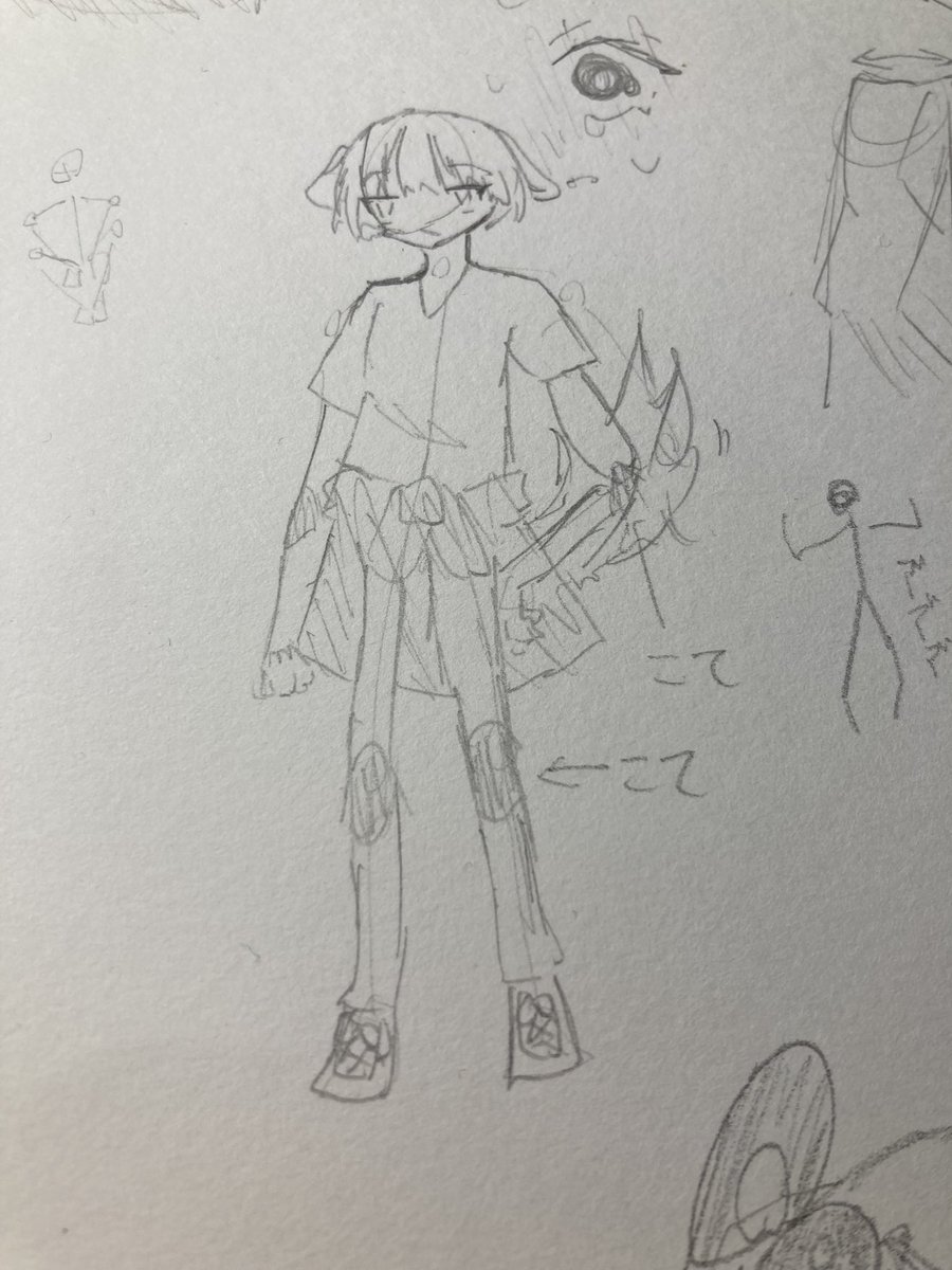 棒人間でアタリとってみた。ついでに創作のおおまかなビジュを具現化できたので満足。でもなんかモブっぽさ滲み出てる〜 #イラスト #創作 #ケモ耳