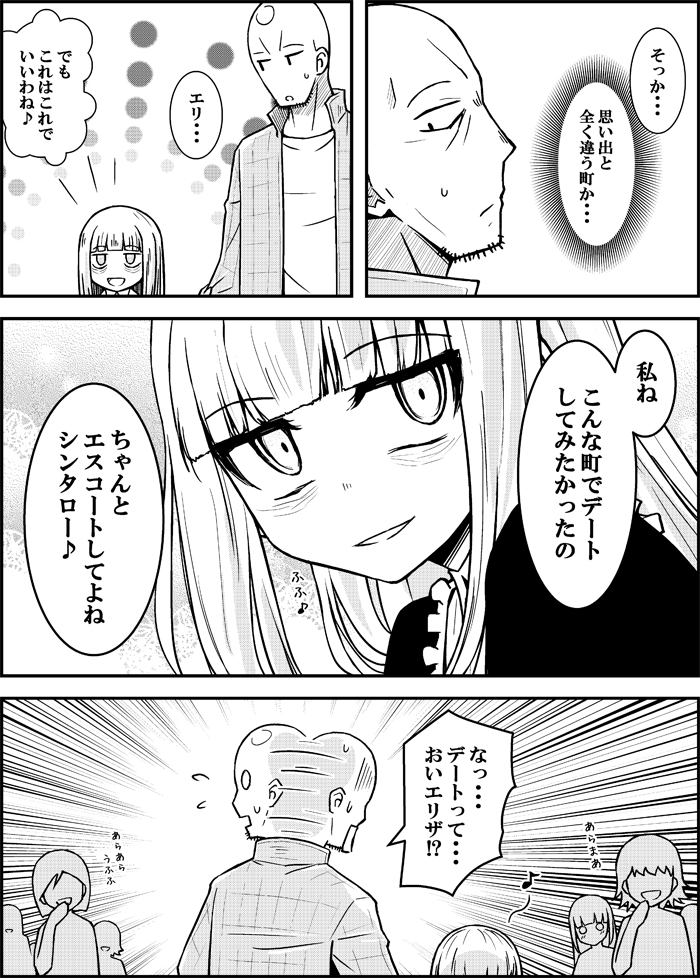 先日第26話が公開されました! 今回はまたエリザの名前を冠した町が出てきます(`・ω・´) 一生懸命描いたので是非読んで貰えたら嬉しいです。 ニコニコ公式のほうも更新されてます♪ ストーリアダッシュ:storia.takeshobo.co.jp/manga/zombiehe… ニコニコ静画:seiga.nicovideo.jp/comic/43365?tr… #ゾンビヒロインと悪人面のハゲ
