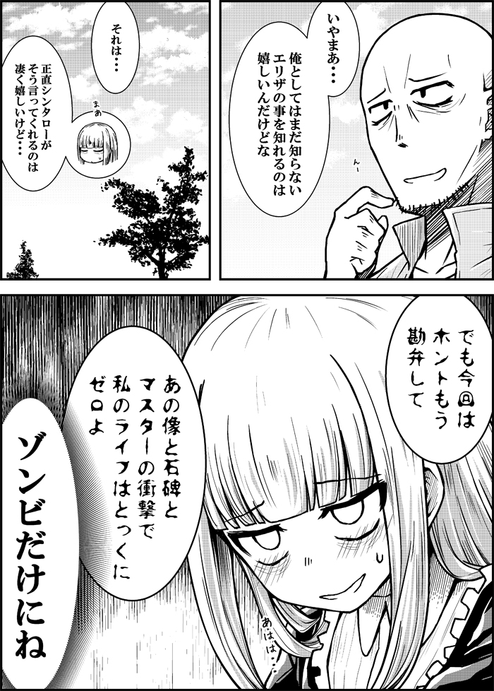 昨日公式サイトで「閑話」が公開されました。 本当は第29話に入ってる予定だったエピソードなんですが間に合わなかったので番外編扱いに(ぉ ニコニコ公式のほうも更新されてます。 ストーリアダッシュ:storia.takeshobo.co.jp/manga/zombiehe… ニコニコ静画:seiga.nicovideo.jp/comic/43365?tr… #ゾンビヒロインと悪人面のハゲ