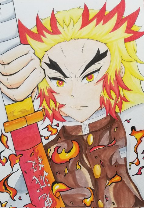 この煉獄の赫き炎刀がお前を骨まで焼き尽くす 今回は、コピックと色鉛筆を使いました~!! うん、カッコいい( 〃▽〃) #鬼滅の刃イラスト #煉獄杏寿郎 #イラスト好きな人と繋がりたい #お絵描き好きな人と繋がりたい