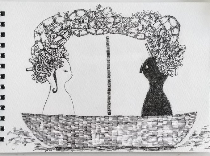 0 2 再び、サンタマリア #模写 #ペン画 #米津玄師 #サンタマリア #絵本ほしい 20/08/09 14:05
