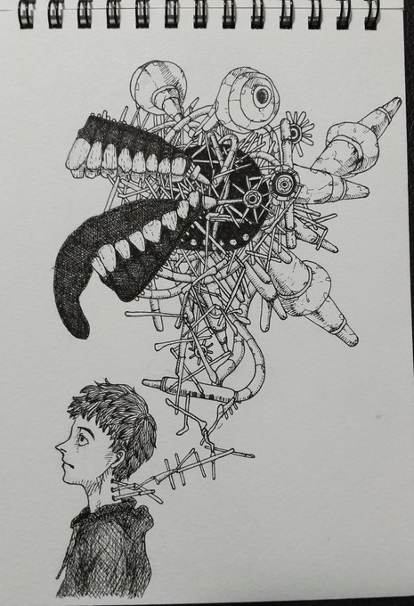 0 3 いれこぐち #かいじゅうずかん #米津玄師 #模写 #ペン画 時間あきすぎてどこまであげたんかわからんようになるwww 21/11/09 11:16