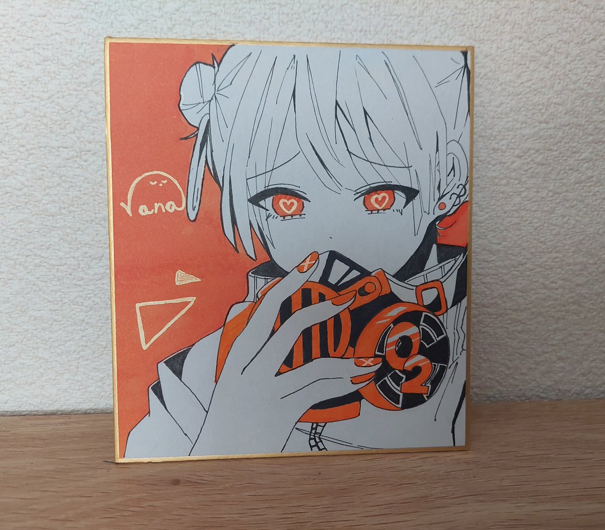 自分のイラストチェキ風にしてみた! コンビニプリント少し色が変わってしまう😢 #イラスト