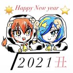 2021年あけおめ🌅ことよろです🎍 ほむ)うしどしーっ🐮 しず)……ポン(ほむらステーキ…✨) ほむ)。o (しずくちゃんのてが!!ほむの、かたに!!!) #ほむしずあーと #ほむしず #あけましておめでとうございます
