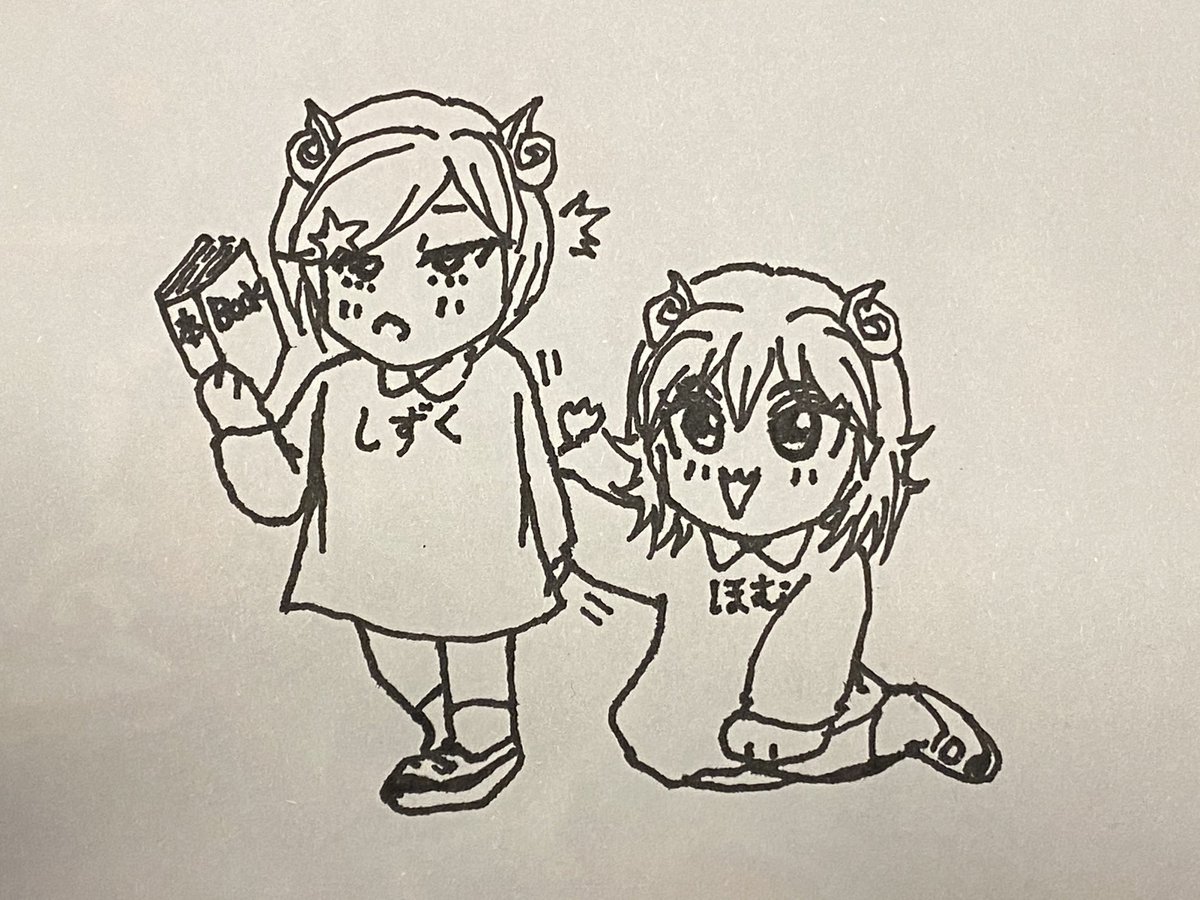JKの歳にならないと獅子村から出れないチビほむしず達のストーリーを仕事中にずっと考えてた社壊人🥲 きっとチビほむが、チビしずにかまってかまってして叩かれちゃうのかなあと妄想…技術があれば読み切り描きたい(無理 #ほむしずあーと #ほむしず twitter.com/39tklv325/stat…