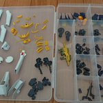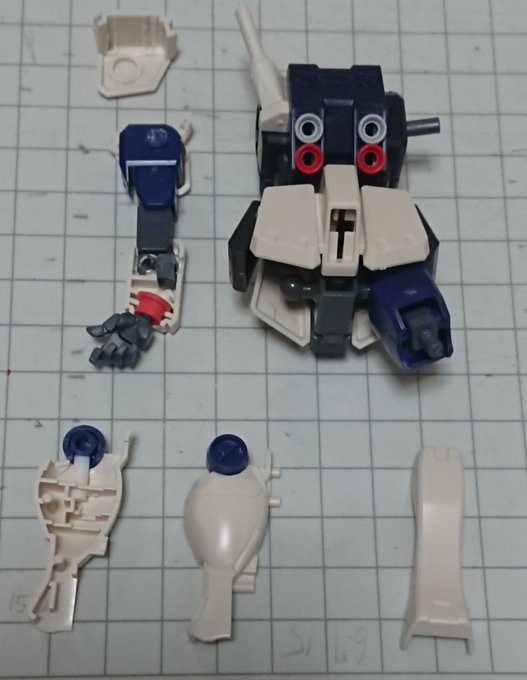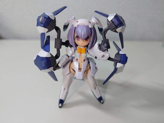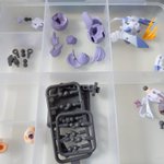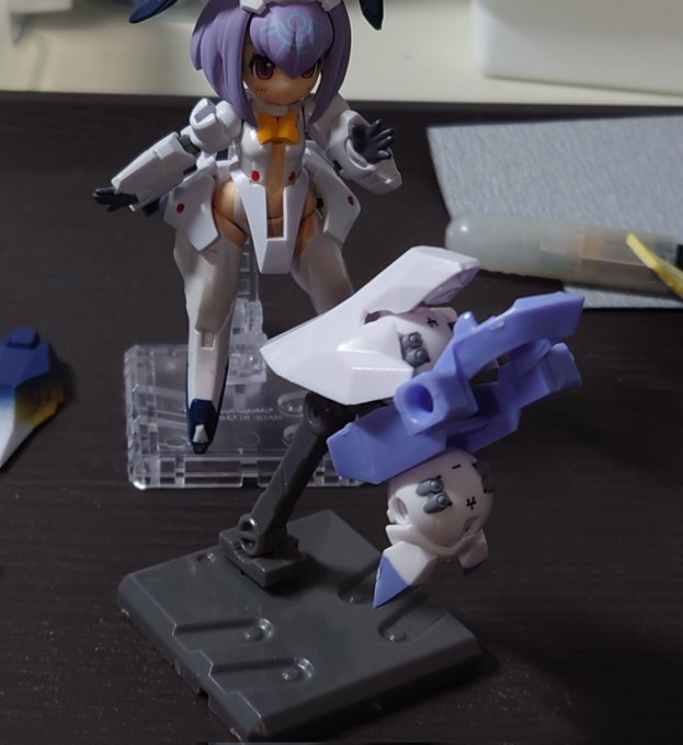 お湯で温めた後にゴッドハンドの万能ベンダーを使用し全パーツのバラし作業です🛠️ 難易度が高いと言われた腰パーツも破損なく腰アーマーを外せました…と気を抜いたら膝関節失敗しました😱 真っ直ぐ抜かずにひねりながら抜いたのが原因です🥹 フレアも何やってんだよ顔です #デスクトップアーミー