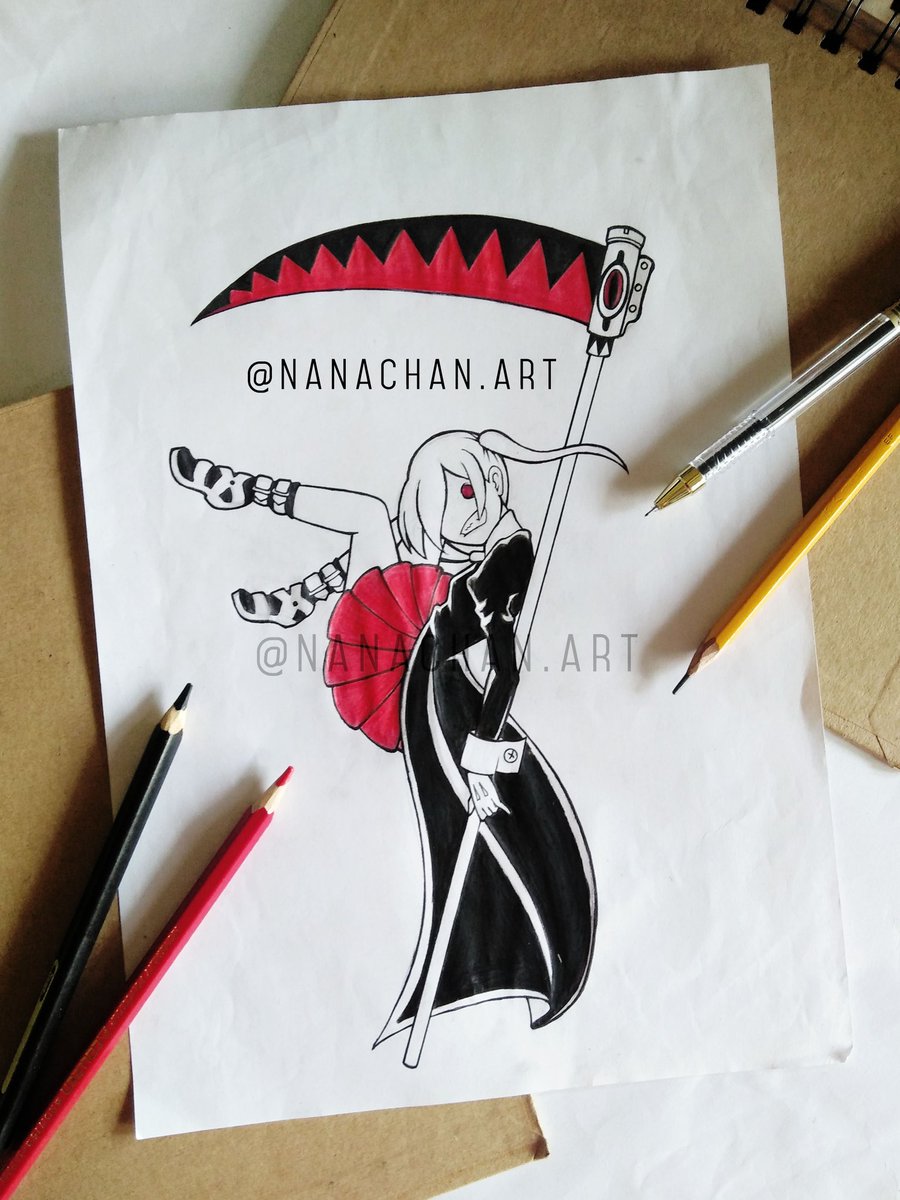 Practicing and experimenting her posing style, and end up like that.. Day 6 - "SWORD" #Inktober #Inktober2017 #Maka #SoulEater #ColorPencil