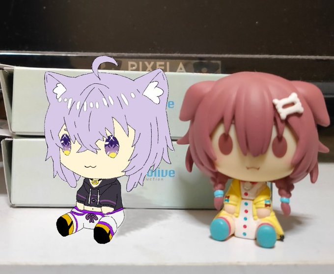 Relaxフィギュアを2人ともお家にお迎え出来た記念絵🥳 #絵フブキ #絵かゆ
