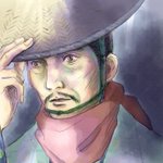 #麒麟ワンドロ お題:「笠・傘」 笠越しに覗く空虚な闇。秀吉を描きました。 約1時間オーバーしちゃいました💦