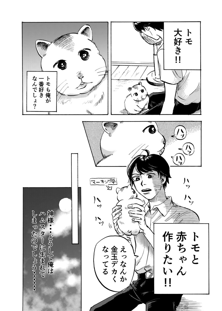 #コミティア138 BLの新刊サンプルです〜🐹 42P/B5/¥600(予定) 飼い主が好きすぎるあまり突然人間になったデッカいハムスターとのラブ本ですわよ 不備なければ出ます🎉 リプ欄に続きます