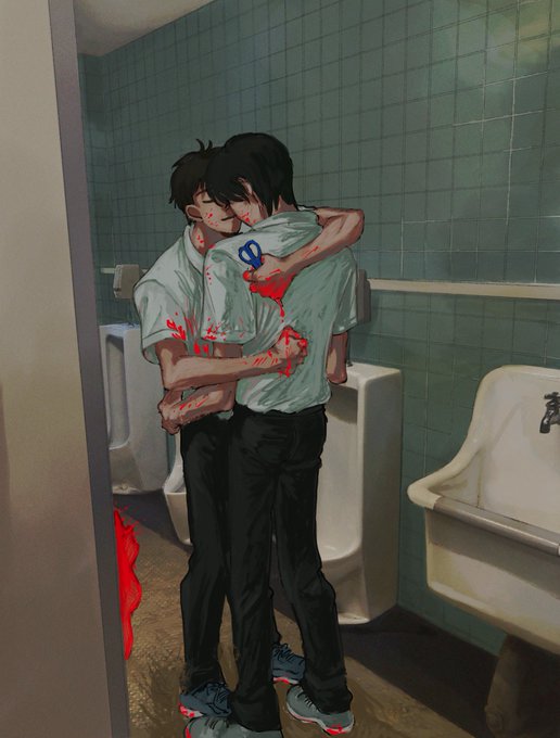 合作で不穏なゲイたちを描かせてもらいました😁 背景(@rehtoMMother ) 人間ども(@nanahiyori1014) 楽しかった✌️ めちゃくちゃいい背景なので隅々までみてください