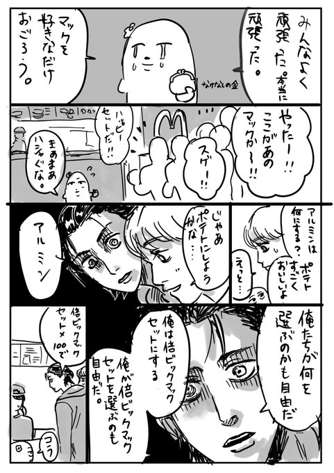 進撃の子達にマック奢る漫画 みんな、がんばった ⚠️白ハゲ ⚠️現パロ