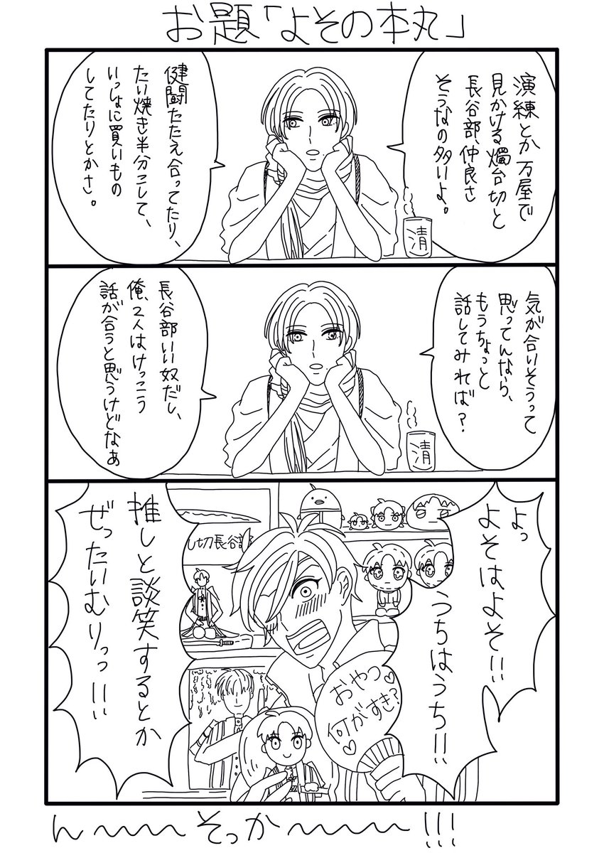20 49 #光忠兄弟ワンドロワンライ お題「シャツ」をお借りしました🌱🌹🌿 清(非番の日は各々で過ごしてるかと思ったけど、いっしょに遊んでるんだ…) 23/08/05 22:19