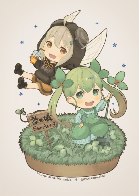 あーる(@rshizennikki)さんの草の娘、 ミツバちゃんとハナアブのハナちゃんを 描かせていただきました! 緊張しましたが、とても楽しかったです! 描かせていただき、ありがとうございました!