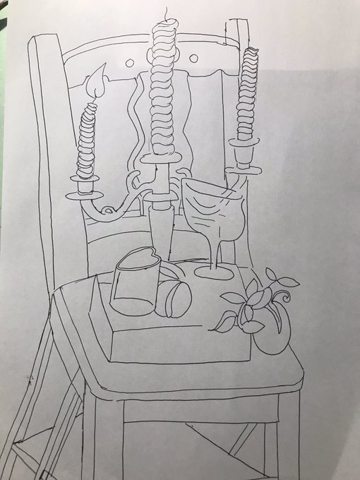 0 4 自分の過去絵を模写した ボールペンで一発書き 思ったようにいかなくてこれはこれで面白いかも #drawing #art #paint #色鉛筆画 22/03/06 05:09