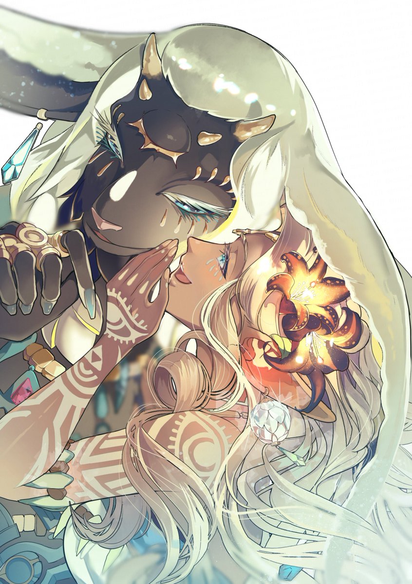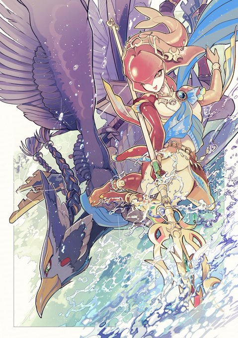 (BotW)ミファーとリーバル これも一緒に投稿する予定だったのに、ハイラル!たまご!そそり立つ塔!インパ!してたら忘れてました 一、二枚目はブレワイ発売した年にツイッターに載せたので覚えてるかたいらっしゃるかもしれないですが、多分三、四枚目はピクシブにしか載せてないので…