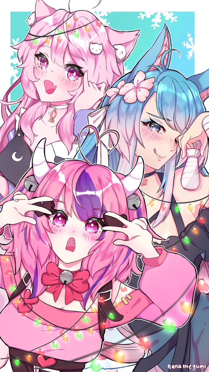 Big pats on my back for finishing this @VShojoOfficial girls as holiday project 💕 Hope they'll like it Happy Holiday everyone 🥂 #DoodleVale #nyanart #ironmouseart #VShojoArt #VTuberEN