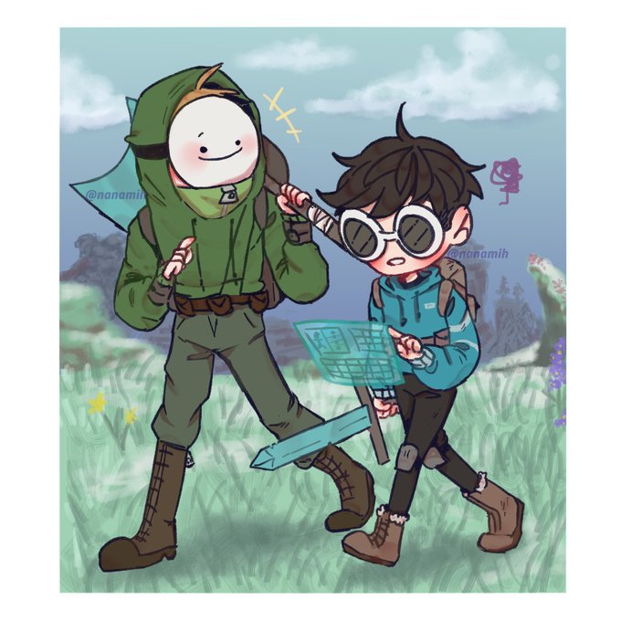 estoy trabajando en cosas de animacion uwu asi que de mientras les dejo unos chiki dream and george ---- ing i guess xd i'm working in something of animation, but I leave you a drawing of little Dream and George -have a nice day 👉👈 #dreamfanart #georgenotfoundfanart