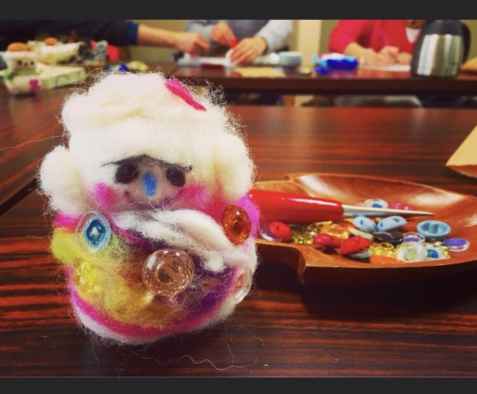 0 4 羊毛フェルトで作りました。 自由に。キラキラする胸のボタンがお気に入りです♬handmade original #handmade #羊毛フェルト 22/01/23 02:16