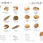 10 54 八代の美味しいぱん屋さん、 「やきむぎや」さんの おしながきのイラストを描かせていただきました。 どのぱんも美味しくて、お腹の中から幸せになれます🎵 20/11/17 07:19