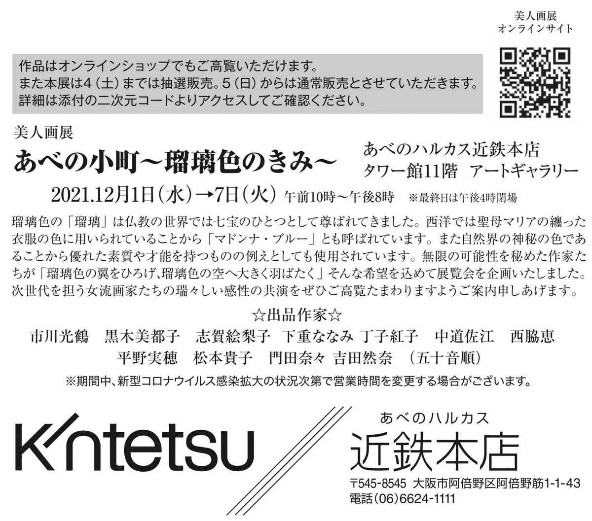 15 55 グループ展のご案内です。 来月1日よりあべのハルカスにてグループ展に参加させていただきます。 私は新作「肥後まり」を出品いたします。 秋にまりを通じて御縁があり、 熊本の伝統工芸品である肥後まりを描きました。 年内の展示はこれが最後です。 近くにお越しの際は是非お立ち寄りくださいませ。 21/11/25 13:43