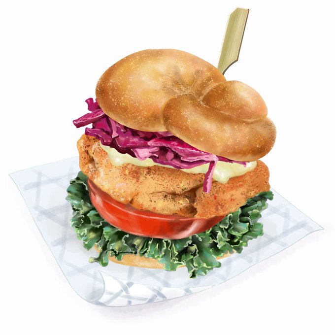 やつしろぷれす 様ご依頼のヴィーガンバーガーも楽しく描かせていただいたパンのひとつ🥪 そしてとても美味しかった…😍 いつかまた食べたいです😋🍔