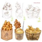 【お仕事ご紹介】 この度、熊本市にある「おいものおやつ」様よりご依頼をいただき お店の看板商品である「がねあげ」等 お芋を使った美味しい商品たちのイラストを描かせていただきました🍠 1枚目ががねあげ。2枚目はラフからの完成図。 3.4枚目はおいものおやつ様Instagramより引用いたしました。