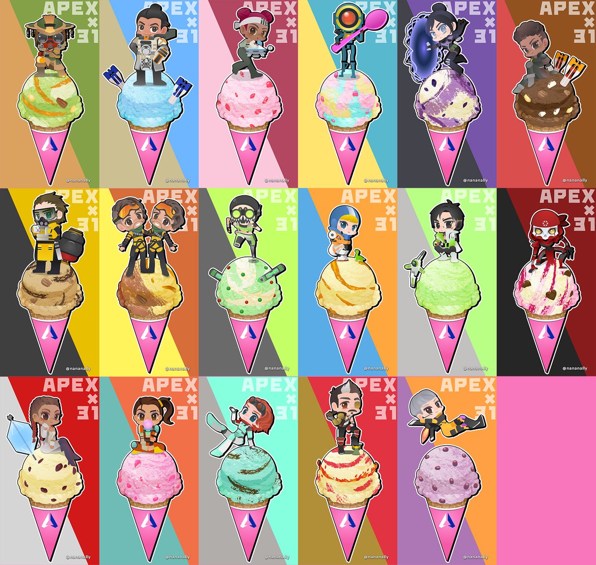 いいね、リツありがとうございます! リプはお返事ゆっくりさせていただきます😭♥️ 全キャラひとまとめと、コンセプト、3枚目はおまけです。 むしろおまけの部分を一番やりたかったまである☺️ トリオとデュオ、トリプルとダブル…。 やっぱりえぺと31の親和性高い! #ApexLegendsfanart