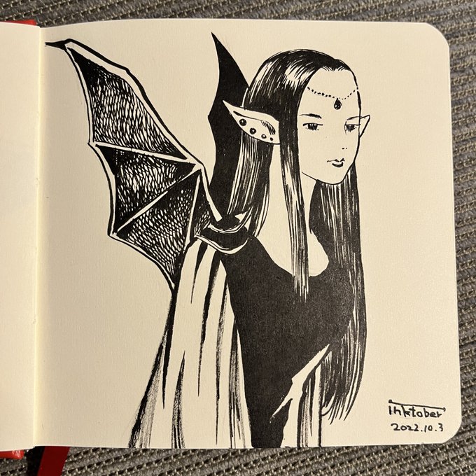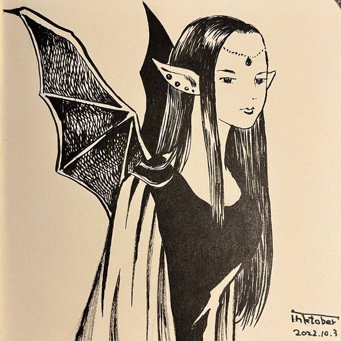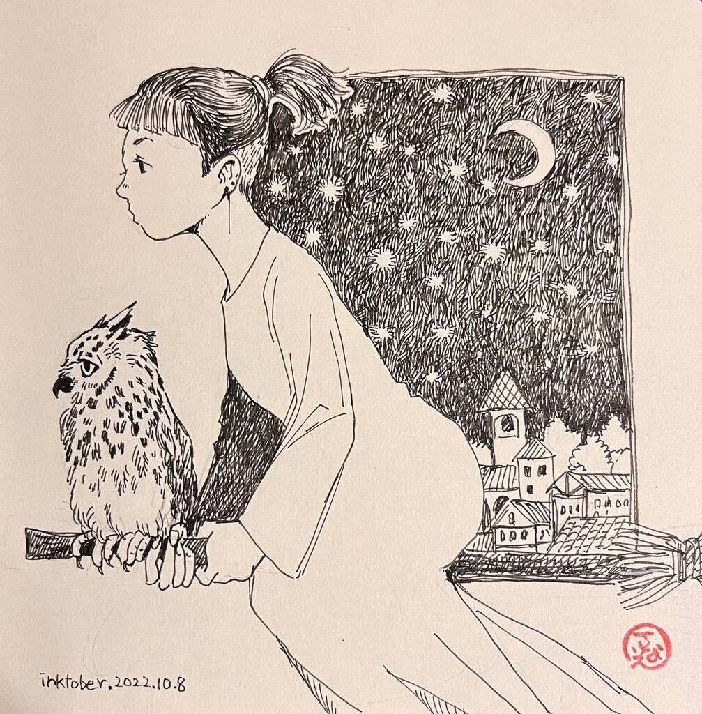 10/6 CARTOONIST MANGAKA 005 これ!描きやすい!好き 筆ごこち薄墨 #Inktober #inktober2022 #kuretake_inktober2022 #Inktober_PerfectChallenge #kuretakeinktober2022_giveaway