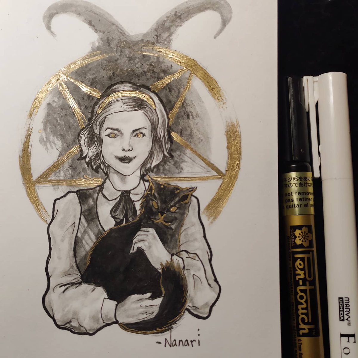 'Ora si, día 9 - Bruja :DD Lamento esto de olvidarme de publicarlo aquí el día que debo :c . . #traditionalart #ArtistOnTwitter #inktober2020 #witchtober #Witchtober2020 #inkart #sketchbook #sabrina #art #traditionaldrawing #Netflix #fanart