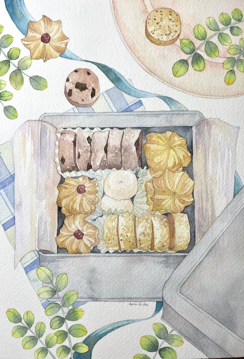 美味しいクッキー缶 #透明水彩 #食べながら描いた