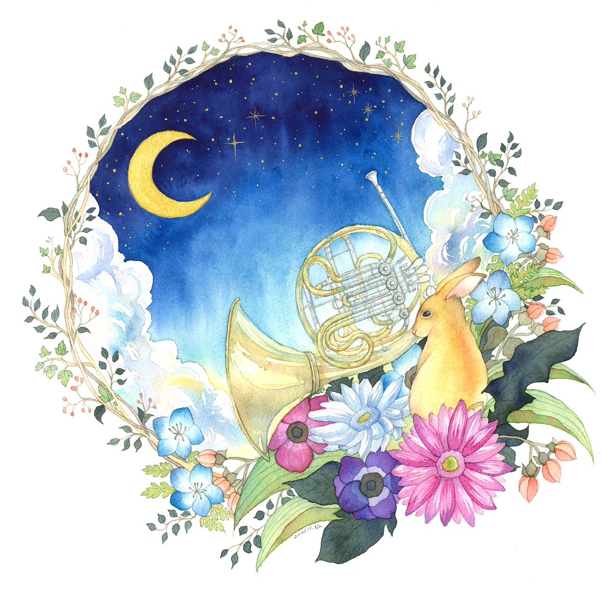 9 48 おやすみ、良い夢を。 #透明水彩 22/11/27 14:56