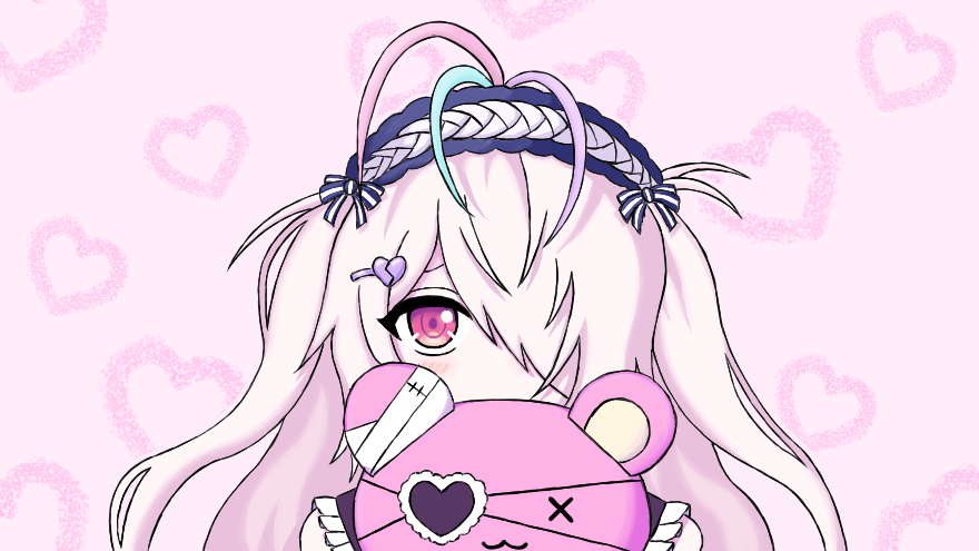 九楽の地雷ファッションを描きたくなった (ほとんど服見えないけど) くまやろうを抱き締め、上目遣いで何かをお願いされる図 #ライjpg