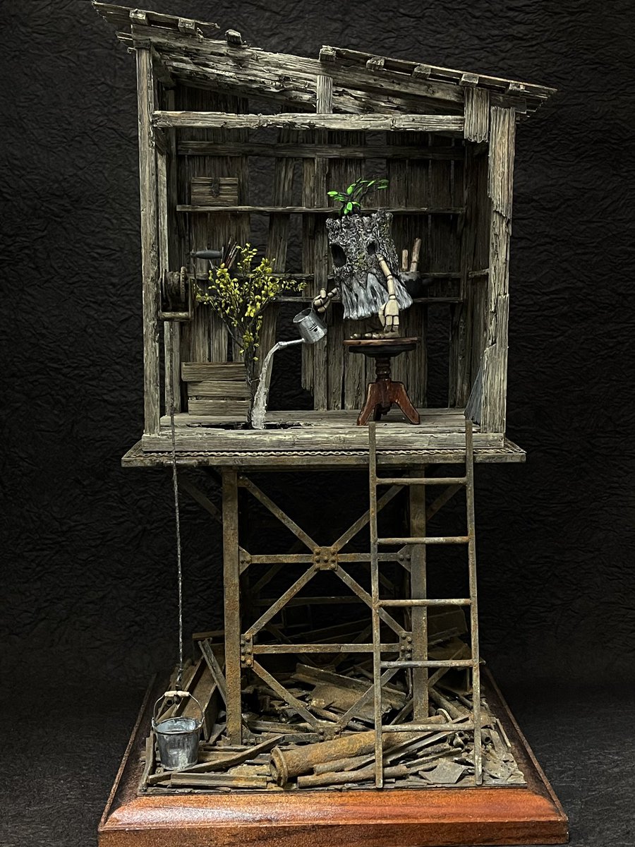 #5月になったのでフォロワーさんに自己紹介しようぜ 粘土、プラ板、木、紙などを使ってフルスクラッチ作品をつくります 出来上がったものは茶色くなりがち よろしくお願いします!!