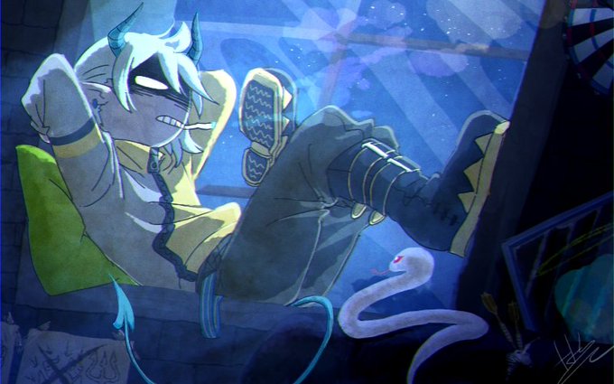 2 17 #イラスト #メアと終末世界 #オリジナル ←自室で窓辺を眺めるLose(ロス) →Specuter(スペクター)を訪ねに来た3人 22/06/14 18:58