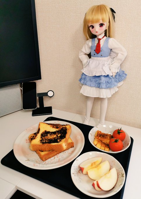 いっぱいあるから選んでいいよー( ⋅֊⋅)つ すず「。。。全部美味しそう(´,,•﹃•,,`)」 こんな食いしんぼうすずちゃんもかわいい💕 #ドールオーナーさんと繋がりたい #MDDはいいぞ #きだっ子
