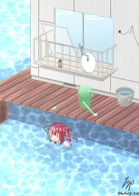 旧艦娘寮の裏から散歩(水中)に出る伊168。 #イラスト好きさんと繋がりたい